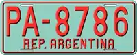 Non-diplomatic embassy staff (personal auxiliar) | PA-1234 | orange on teal; "Rep. Argentina" legend; longer plate size |