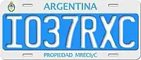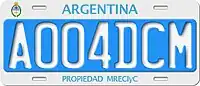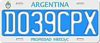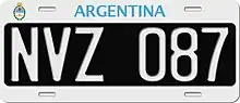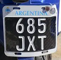 Argentine license plates (in Spanish, chapas patentes or simply patentes) are used to uniquely identify motor vehicles on the roads of Argentina. The current system employs three letters followed by three digits, issued consecutively, but the license plate system underwent significant changes before the use of this format.