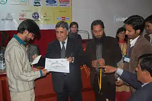 A participant receiving award during the prize distribution ceremony at Verite Film Festival held on 20 April 2011 at IUST.