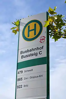 The Verkehrsverbund Berlin-Brandenburg (VBB) is a transport association run by public transport providers in the German states of Berlin and Brandenburg. It is a private limited company owned jointly by the states of Berlin and Brandenburg (with one third each) and the 18 counties and cities of Brandenburg with 1.85% each. It was founded on 30 December 1996. VBB claims to be one of the largest transport associations in Europe based on the area covered of 30,367 km² with nearly 6 million inhabitants.[1] Common ticketing was launched on 1 April 1999. The 2005 number of passengers transported was 1.23 billion, with 3.37 million passengers per day.[2]:p:27