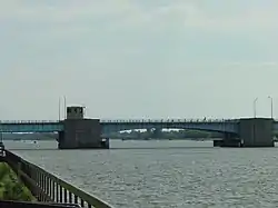 The Veterans Memorial Bridge is a drawbridge located in Bay City, Michigan. It carries State Highway M-25 and Business Spur I-75 over the Saginaw River. Its location is just south of Wenonah Park (on the east side of the river), and Veteran's Park (on the west side).