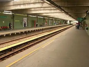 Vicente de Carvalho Station (Portuguese: Estação Vicente de Carvalho) is an integrated Rio de Janeiro Metro subway and BRT bus station that services the neighbourhood of Vicente de Carvalho in the North Zone of Rio de Janeiro.