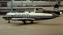 The Vickers Viscount was a medium-range airliner driven by four turboprop engines. The type was designed and manufactured in Britain from 1948 to 1963.