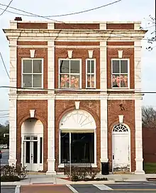 Also included, at the corner of McIntosh and Main streets, is the First National Bank of Vidalia, which was designed by architect Ivey P. Crutchfield. It was built in 1910 by W.D. Donovan who served as its first president. The bank was started with a capital stock of $35,000. It is a two-story Neoclassical brick building with marble cornices, pilasters, belt courses and keystones. The building was purchased in c. 1926 by J. Frank Darby after the First National Bank had moved. Darby founded the Darby Bank there, which was the only bank surviving in Toombs County at some point during the Great Depression; Darby later moved his bank to a building at the corner of Church and Meadows streets, and the First National Bank building was occupied by Lillar's Wave Shop in 1997.[2]