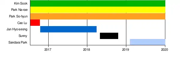 - ↑ "'비디오스타' 전효성 하차→써니 합류..새로운 바람(공식)- 스타뉴스". 스타뉴스 (in Korean). 2018-04-12. Retrieved 2018-05-06.