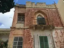 On 29 November 2017, the NGO Din l-Art Ħelwa and some residents submitted an application for the building to be scheduled.[45] A report detailing the building's history and architectural significance was carried out with this goal in mind.[2] A couple of days later, on 2 December, demolition work began on part of the building.[46] Workers were told to leave the site by a Planning Authority official, but they returned and resumed their work once the official left.[47][48] Demolition continued two days later, when the distinctive street-facing balcony was destroyed.[44] The parts of the building which have been demolished were not part of the original villa but part of the extension built in the 1870s.[49] The demolition works were condemned by the Democratic Party,[50] while Din l-Art Ħelwa, Flimkien għal Ambjent Aħjar, the Chamber of Architects and the Sliema Heritage Society expressed concern at the works.[44][51][52] The Interdiocesan Environmental Commission expressed its disappointment at the demolition.[53] The work done was entirely illegal.[54]