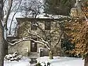 As limestone workers and owners, the residents of Vinegar Hill naturally looked to limestone as the material for their own houses.[2]:89 They used these materials to construct residences in a wide range of architectural styles, including American Craftsman, Neoclassical, and Art Deco. Inside, the houses were also ornate: many feature mantels and balusters of carven stone,[3] and the four houses built by Christopher Donato also include elaborate transoms and lintels. The most prominent houses in the neighborhood are the hilltop homes of the wealthy near the eastern end of the district; here may be found styles such as Tudor Revival and Georgian-influenced Colonial Revival.[2]:90 Throughout the district, many houses are found in various forms of Colonial and English Revivals,[4] and multiple Spanish Colonial Revivals are among the most significant residences of the lower part of the hill. Among the books that have concentrated on the architecture of Vinegar Hill is Carol Shields' novel The Stone Diaries, in which the neighborhood is part of the setting for much of the novel.[2]:91