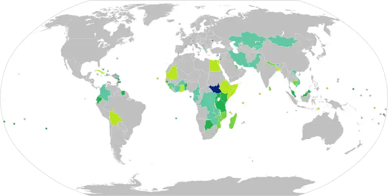 Visa requirements for South Sudanese citizens are administrative entry restrictions by the authorities of other states placed on citizens of South Sudan. As of 2 July 2019, South Sudanese citizens had visa-free or visa on arrival access to 42 countries and territories, ranking the South Sudanese passport 99th in terms of travel freedom (tied with the passports of Congo (Dem. Rep.), Ethiopia and Sri Lanka) according to the Henley Passport Index.[1]