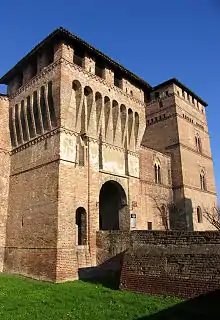 The Visconti Castle in Pandino (Castello Visconteo di Pandino) is a 14th-century castle located in the center of the town of Pandino, province of Cremona, region of Lombardy, Italy. It was built by Bernabò Visconti and his wife, Beatrice Regina della Scala, between 1355 and 1361. Today it essentially retains its original forms.[1][2]