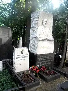 Bonch-Bruyevich died on 14 July 1955. He was buried at the Novodevichy Cemetery in Moscow.