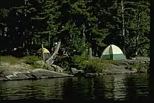 Voyageurs National Park is an American national park in northern Minnesota near the city of International Falls established in 1975. The park's name commemorates the voyageurs—French-Canadian fur traders who were the first European settlers to frequently travel through the area.[3] Notable for its outstanding water resources, the park is popular with canoeists, kayakers, other boaters, and fishermen. The Kabetogama Peninsula, which lies entirely within the park and makes up most of its land area, is accessible only by boat. To the east of the park lies the Boundary Waters Canoe Area Wilderness.