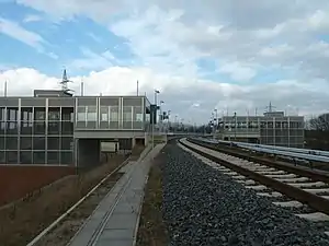 The Waßmannsdorf station is a stop of the Berlin S-Bahn in Waßmannsdorf in the municipality of Schönefeld on the Grünau Cross–Berlin Brandenburg Airport railway. It was completed in October 2011 and opened on 26 October 2020, five days before Berlin Brandenburg Airport (BER) opened on 31 October 2020. A railway station already existed in the village from 1951 to 1982. It was not located at the same place and was exclusively a depot (Betriebsbahnhof) on the Berlin outer ring.