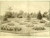 The garden was created circa 1864 as the kitchen garden to the Walton Lea mansion house. It was designed by Edward Walters and built by George Crosfield, the eldest son of soap manufacturing pioneer Joseph Crosfield.[3] In the early 1900s the house was bought by the Armitage family. In 1923 it was bought by the Greenall family, owners of nearby Walton Hall. The Greenall and Crosfield families were political rivals and in 1925 the Greenalls demolished the mansion leaving only the garden, cottages and associated buildings.[3] The estate also included a fernery and rose garden that are no longer in existence. The walled garden later passed to Warrington Borough Council.[1] It is in now managed by the Walton Lea project to benefit the community and people with disabilities.[2]