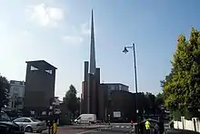 At the junction of Warwick Avenue with Warrington Crescent and Clifton Gardens is the Anglican Church of St Saviour, consecrated 1856 but rebuilt in modern style in 1973–76.[2] The church was used for the wedding scenes in the promotional video for The Human League hit Love Action (I Believe in Love).