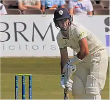 Hailing from a strong cricketing family, with uncles Henry Fotheringham, Michael Madsen, Trevor Madsen and cousin Greg Fotheringham all playing first-class cricket in South Africa, Madsen made his debut in 2003 for KwaZulu-Natal cricket team.[1] In August 2009 he signed his contract with Derbyshire, following a strong run of form with two centuries in four games.[2] He captained Derbyshire for four seasons;[3] in the 2012 season, Derbyshire were promoted from County Championship Division Two to Division One.[3] They were relegated the following season, and Madsen was named the Championship's Player of the Season.[3] After gaining UK citizenship in February 2015, Madsen announced that he hoped to represent England in the future.[4] Ahead of the 2016 season, he signed a contract extension until 2019.[5] He also stepped down as Derbyshire's County Championship captain, and was replaced by Billy Godleman.[3] In the 2017 t20 Blast, Madsen scored 526 runs, a record for a Derbyshire player in the competition.[6] Madsen later signed a contract extension with Derbyshire until 2022.[7]