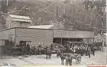 A tramway was proposed in northerly direction to Boco Siding on the Emu Bay Railway, over a distance of 8 mi (13 km). Originally planned to be laid with iron rails, it was eventually opened as a horse tram in 1902 with timber rails. The tramway could handle the transportation of the ore at reasonable cost, but as output from the mine increased, was unable to handle the traffic. A shorter route to the railway was surveyed, running on the north side of the Pieman River. The steel-railed steam tramway line was constructed by Dunkley Brothers, who were well known in Tasmania for their activities in the timber industry and was taken in service in 1909. It met the Emu Bay Railway at Farrell Siding, which was located on a continuous 1:40 grade as that railway dropped down to the Pieman River bridge. Therefore, complicated transhipment facilities needed to be erected.[3]