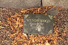 - ↑ "Wendy Wood, 88, plans for the future". The Glasgow Herald. 30 October 1980. p. 11. Retrieved 15 May 2017.