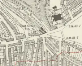 West Green railway station was on the abandoned Palace Gates Line in North London. It was in West Green on the north side of West Green Road, west of the junction with Philip Lane, and near the Black Boy public house. The Great Eastern Railway opened it on 1 January 1878. Competition from nearby railway lines and the Underground Piccadilly line rendered the Palace Gates line unprofitable and the line and the station were closed for passenger services on 7 January 1963[1][2] and for freight on 7 December 1964 by British Rail.