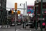 In 1960, a number of African American sharecroppers in majority-Black Fayette and Haywood counties were evicted from their lands in retaliation for registering to vote. In response, they formed a makeshift encampment called Tent City with the assistance of Black landowners, which lasted until 1962.[21] On April 4, 1968, civil rights leader Martin Luther King Jr. was assassinated in Memphis by James Earl Ray.[22] King had traveled to Memphis days before to support striking African American sanitation workers.[23][24] The construction of Interstate 40 through Memphis became a national talking point on the issue of eminent domain and grassroots lobbying when the Tennessee Department of Transportation (TDOT) attempted to construct the highway through the city's Overton Park. A local activist group began fighting the project in 1957, and in 1971, the U.S. Supreme Court sided with the group and established the framework for judicial review of government agencies in the landmark case of Citizens to Preserve Overton Park v. Volpe. The group's efforts eventually resulted in TDOT cancelling the route in 1981.[25][26]