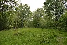 The site is ancient woodland on chalky boulder clay and sandy loam. It was mainly elm, but this has died and the wood regenerated naturally with ash, and there is also some field maple and hornbeam. Bramble and dog's mercury dominate the ground layer, and there is a rich variety of plants in wetter areas, such as oxlip and meadow-sweet.[1] There are many species of birds and butterflies, and four ponds which have great crested newts, dragonflies and damselflies.[3]