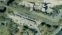 The swap, in which the state traded a parcel of land on Route 145 for the town's garage site off Norris Avenue (which became part of the expanded parking lot), was begun in 2004 and mostly agreed to in late 2005, but was not finalized until 2006 when the state agreed to pay $1.5 million for the town to build a new garage on the Route 145 site.[12] Town highway operations were moved to the Route 145 site in September 2011, allowing site clearing to begin in November, and ground was broken for the $14.4 million station in January 2012.[12][13]
