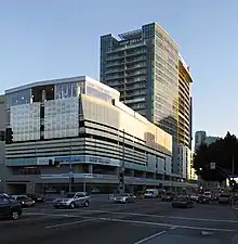 ![]() A transit-oriented development of condominiums, a parking garage, above the D line subway station at Wilshire Boulevard and Western Avenue. | |