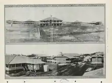 On Saturday 6 September 1919, John Huxham, the Queensland Home Secretary opened the Westwood Sanatorium,[14][15] a 64-bed sanitorium was opened in Westwood to treat miner's phthisis,[16] a lung disease suffered by miners from working in dusty conditions. Later, it treated patients with tuberculous. In 1953, a ¾ mile bitumen road was built from the Huxham railway siding (just to the north of Westwood) to the sanitorium and named Haigh Drive in memory of Leonard Garfield Haigh, the former chairman of the Rockhampton Hospitals Board from 2 June 1933 to 16 February 1953. Commencing with a tiled-roof waiting shed at the siding with a plaque commemorating Haigh, the drive to the sanitorium was flanked with Peltophorum trees and was officially opened by James Larcombe (MLA for Rockhampton) in the presence of Haigh's widow on Sunday 1 November 1953.[17][18] More effective medical treatments for tuberculous resulted in the closure of the sanitorium in 1959, but the building continued to be used as a nursing home until the 1980s. The sanitorium buildings were then relocated or demolished; one is in use as a private home in Emerald.[19]