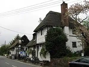 It lies around the crossroads formed by the Westwood Road (which leads to Betsham), Highcross Road (leads to Bean), Whitehall Road (leads to Longfield), and Hook Green Road (leads to Southfleet village).[2] The Wheatsheaf Public House, near the crossroads, is a Grade II Listed Building. This dates from 15th – 16th century and is a timber-framed building, faced with plaster, with a hipped thatched roof.[3] Nearby is Westwood farm.