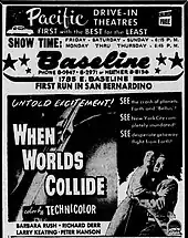 When Worlds Collide is a 1951 American science fiction disaster film released by Paramount Pictures. It was produced by George Pal, directed by Rudolph Maté, and stars Richard Derr, Barbara Rush, Peter Hansen, and John Hoyt. The film is based on the 1933 science fiction novel of the same name, co-written by Edwin Balmer and Philip Wylie.[3]