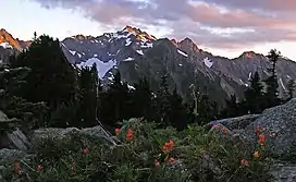 White Mountain is a 6,378-foot (1,944-metre) mountain summit located in the Olympic Mountains, in Jefferson County of Washington state.[1] Situated in Olympic National Park, its nearest higher peak is Mount La Crosse, 0.95 mi (1.53 km) to the northeast, and an unnamed glacier lies in the north cirque between the two peaks.[2] The Anderson massif lies 3.1 mi (5.0 km) to the north of White Mountain. Precipitation runoff from the mountain drains into tributaries of the Quinault River and Duckabush River.