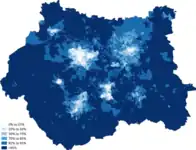 Greater London 5,663,496 85.7% 5,333,580 79.8% 5,103,203 71.2% 4,887,435 59.8% 4,731,172 53.8%