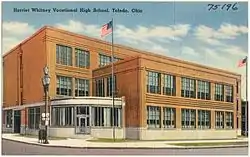 Harriet Whitney High School was a girls vocational public high school in Toledo, Ohio from 1939 to June 1991. It served the entire city and was part of the Toledo Public School District. In 1959, the school became joint-operational with Macomber High School,[2] an all-boys vocational school located next door, and the two buildings came to be known as Macomber-Whitney. Despite the fact that they shared an urban campus and some operational efficiencies, the two schools were completely separate in faculties, enrollments, and curriculum until the 1973-1974 school year. In the spring of 1972, an assembly was held for Macomber sophomores. They were told that they could major in one of several programs offered at Whitney, taking core courses at Whitney and other courses required for graduation at Macomber. The available programs included Distributive Education, Business Technology, Marketing, and Data Processing. Some 50 boys signed up. The only change from the assembly announcement was that the boys were transferred completely to Whitney. While the faculty and staff at Whitney had to make some adjustments to accommodate the boys, the program change worked well. The boys did have to undergo some questions from peers, some of whom didn't believe they actually attended Whitney (the most common response was "you mean, Whitmer?"—Whitmer being another co-ed high school in the metro Toledo area. And, even after the former Macomber boys were completely and fully registered as Whitney students, the school newspaper (Whit-Miss) and the yearbook (First Lady) kept their original names from when Whitney was a girls-only school.