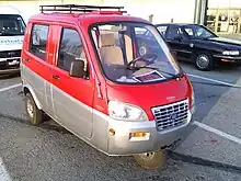 The WF-120V is a two-seat coupe manufactured by Shandong Huoyun Electric Car Co., Ltd, located in Zibo, China.[5] The WF-72 V is a four-seat sedan manufactured by Shandong Pioneer Motorcycle Co., Ltd.[6] The WF-120 is powered by an 8.5 kilowatt, 120 volt AC motor. The WF-72 V is powered by an 8.5 kilowatt, 72 volt, AC motor. The styling of the WF-120 V seems to be a copy of the Smart, including lines in quarter panels where the Smart doors are supposed to close.[7] This appears to be a liability and the owner of the Smart design (Mercedes)[8] may force the manufacturer to stop import or take other legal action. As they are registered as neighborhood electric vehicles, both are programmed by the manufacturer not to exceed 25 miles per hour but can be adjusted to run up to 50 miles per hour.[9][10]
