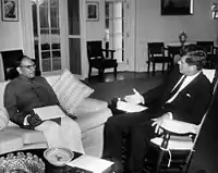 Ambassador William Gopallawa meets with President of the United States John F. Kennedy in the Oval Office of the White House, 7 September 1961