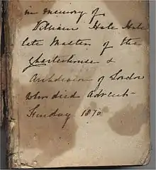 Hale died at the Master's Lodge, Charterhouse, on 27 November 1870, and was buried in St Paul's Cathedral on 3 December. He had married at Croydon, 13 February 1821, Ann Caroline, only daughter of William Coles, and had issue five sons and three daughters. His wife died 18 January 1866 at Charterhouse, and was buried in St Paul's Cathedral.[2]