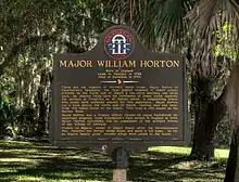 He was the leading military aide to General James Oglethorpe and was in charge of troops garrisoned at Fort Frederica on nearby St. Simons Island. Captain (1740), Major (1742).[2] In 1735, Horton was granted Jekyll Island by the trustees of the colony of Georgia and also brewed beer in Georgia's first brewery on his plantation. He built Horton House in 1743, a historic site on Riverview Drive in Jekyll Island, Georgia. It is one of the oldest tabby buildings in Georgia, and is listed on the National Register of Historic Places.[3]