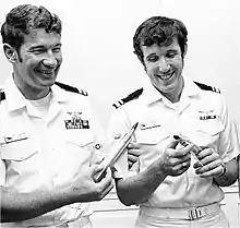 Lieutenant William P. Driscoll (right) and Lieutenant Randall H. Cunningham in a ceremony honoring them in June 1972