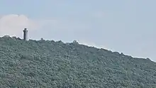 The site of the tower is the location of a former tower that had been built by the Mount Penn Gravity Railroad Company in 1889.[1][3] The company operated a scenic railway tour along the mountain ridge and the tower had been constructed as a tourist attraction, offering scenic vistas.[1] A hotel was also constructed during this time and stood from 1891 to 1959, when it was razed.[1] The site of the hotel is today a cement platform near the current tower.[1] The original tower operated from 1890 to 1923, when the wooden structure was destroyed in a purported act of arson.[1][3]