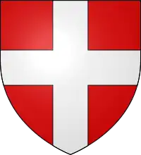 During the lifetime of his brother, John, William bore arms blazoned: Or, a cross Sable, debruised by a label of five points Gules. Upon succeeding John, William bore arms blazoned Or, a cross Sable. These arms were later inherited by his illegitimate son, William.[2]