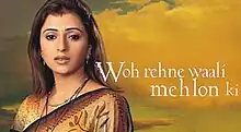 Woh Rehne Waali Mehlon Ki (English: She Who Lives in a Palace) is an Indian Hindi language Indian television series that aired on Sahara One channel. The series ran from 30 May 2005 and ended on 20 January 2011. It became the longest running television production of Rajshri Productions and the most successful show on the channel.[2][3]