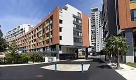 The main retail precinct is the Village Square, which is directly opposite the Wolli Creek station entrance and contains a wide array of restaurants and cafés, a pharmacy, barber and other shops.[7] Other amenities in the area include an Asian grocery in the village square, as well as an Aldi supermarket, Woolworths and a Dan Murphy's liquor store.