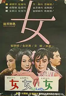 Woman (여 - Yeo) is a 1968 three-part South Korean film directed by Kim Ki-young, Jung Jin-woo and Yu Hyun-mok. The film was based on ideas of Kim Ki-young's wife, Kim Yu-bong, and Kim directed the last third.[2]