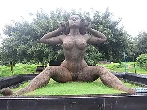 Yakshi is a sculpture in Malampuzha park, Palakkad adjacent to the Malampuzha Dam in the Indian state of Kerala.[1] Sculptored by Kanayi Kunhiraman, its construction was completed in 1969.[2] It is a 30 ft (9.1 m)-tall sculpture inspired by a nude female yakshi (Hinduist female spirit), with her legs spread out, breasts lifted, eyes raised to the sky in a semi-drowsy state and fingers running through her hair.[3][4] The sculpture is constructed in a single piece.[5] Kunhiraman was honoured by Kerala Government in 2019 during the 50th anniversary of the sculpture.[6]