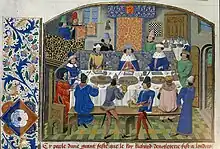 King Richard II dines with the Dukes of York, Gloucester and Ireland. (late 15th century miniature)
