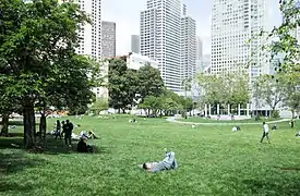 In 1999 the Yerba Buena Gardens received the Gold Medal of the biannual Rudy Bruner Award for Urban Excellence.[6] In praising the design of the work, the jury noted the process that led to the creation of the gardens, as well as its inclusiveness in terms of the population it serves and its neighborhood: "The mixed-use development enables cultural, social justice, and economic development agendas to coexist within a network of collaborative management practices."[7] Furthermore, the jury "applauded the evolution of the project's development process to an inclusive model involving multiple constituencies." However, in his history of the development of San Francisco from the 1950s to the 1990s Chester Hartman recounts that the entire Yerba Buena project was long drawn out over 3 decades, born of a local struggle that included evictions and harassment of the previous tenants in the area, most of them old and poor, but who had joined to fight for their rights. Even during the final design stages there were struggles regarding the building program. After John Elberling, of the Tenants and Owners Development Corporation (TODCO) protested the removal of a bowling alley from the plans, the San Francisco Development Agency (SFRA) backed down and the bowling alley was re-included and eventually built.[7]