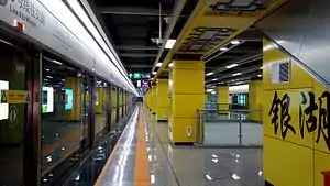 Yinhu station (Chinese: 银湖站; pinyin: Yínhú Zhàn) is a station of Line 6 and Line 9 of the Shenzhen Metro. Line 9 platforms opened on 28 October 2016 and Line 6 platforms opened on 18 August 2020.[1]