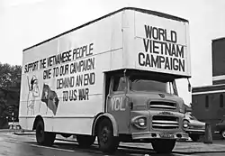During the 1960s, the Young Communist League actively supported the National Liberation Front (Viet Cong) and the Vietnamese people during the Vietnam War.[12] They supplied large quantities of Blood plasma, as well as collecting funds to buy over one hundred bicycles, many of which were donated to the Vietnamese at the 9th World Festival of Youth and Students in Bulgaria, 1968.[13]