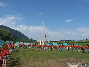 Flag formation of Slovenian catholic Scouts (ZSKSS) on Summer camp 2017