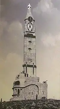 After the German and Italian invasions in April 1941, Yugoslavia was divided between the Axis powers. The Bulgarian occupation authorities mined and destroyed the monument in a large explosion on May 24, 1942.[2] Complete monument reconstruction was announced to be completed in centennial of the Battle of Kumanovo, in 2012.[3][4]