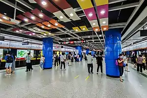 Zhujiang New Town Station (Chinese: 珠江新城站; Cantonese Yale: Jyūgōng Sānsìhng Jaahm) is an interchange metro station on Line 3 and Line 5 of the Guangzhou Metro. It started operations on 28 December 2005 and is located under the junction of Huaxia Road (华夏路) and Huacheng Avenue (花城大道) in Zhujiang New Town, Tianhe District, Guangzhou.[1][2]